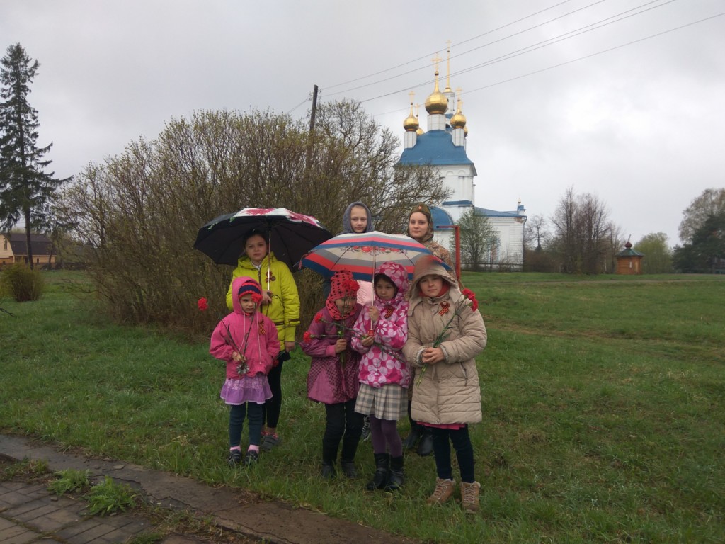 Не смотря на холодную и дождливую погоду, дети прочитали свои стихи и спели песню. Потом повторили свой концерт в д.Макарьевская дома у ветеранов Великой Отечественной войны, которые не смогли присутствовать на возложении.